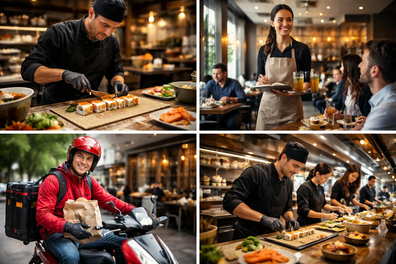 Na stanowisku kucharza sushi lub pomocy kuchennej zajmujesz się przygotowywaniem potraw zgodnie ze standardami, dbaniem o świeżość składników oraz organizacją stanowiska pracy. Kierowca dostaw odpowiada za terminowe i bezpieczne dostarczanie zamówień do klientów, kontakt z klientem oraz reprezentowanie restauracji w terenie. Niezależnie od roli ważna jest punktualność, zaangażowanie i chęć do nauki – reszty możemy Cię nauczyć na miejscu.