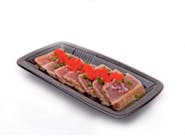 California King Maguro Roll 5 szt.California maki z tuńczykiem, awokado, serek, togarashi, ogórek, serek, obłożona opalonymi plastrami tuńczyka ,sriracha