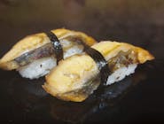 Ebi Panko Gunkan 3 szt.Trzy gunkany owinięte w omlet tamago z japońskim majonezem, chrupiącymi krewetkami oraz słodko pikantnym sosem.