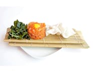 Tatar z łososiarolka w tempurze, tatar z łososia. 6 szt.