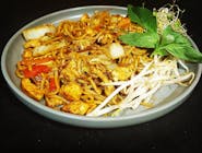 Pad Thai z kurczakiemmakaron ryżowy, sos tamaryndowy, jajko, kurczak, kiełki fasoli mung, świeże warzywa, orzeszki arachidowe, płatki chilli, świeża kolendra, limonka.
