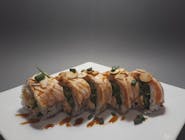 Grillowany łosośrolka w tempurze, serek, ogórek , awokado, oshinko. 6 szt.