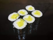 Maślanarolka w tempurze, serek, ogórek , awokado, oshinko. 6 szt.